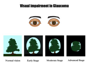 There are no warning signs or obvious symptoms in the early stages of Glaucoma. As the disease progresses, blind spots develop in your peripheral (side) vision. Most people with glaucoma do not notice any change in their vision until the damage is quite severe. This is why glaucoma is called the “silent thief of sight.”